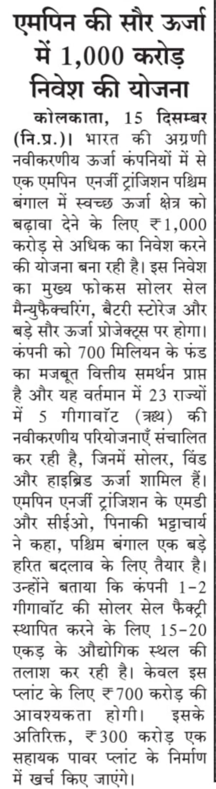 AMPIN Energy Transition has signed a long-term renewable power purchase agreement (PPA) with Air Liquide India to supply 6.6 MW…