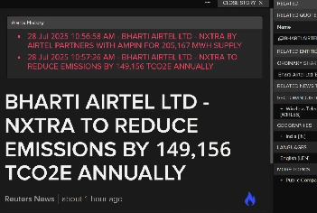 Bharti Airtel LTD – NXTRA to reduce emission by 149,156 TCO2E annually….